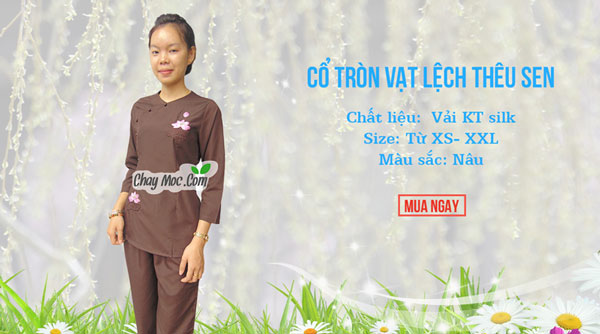 Quần áo phật tử, đi chùa: Cổ tròn vạt lệch thêu sen